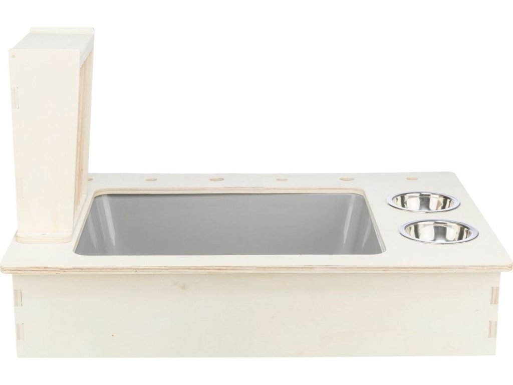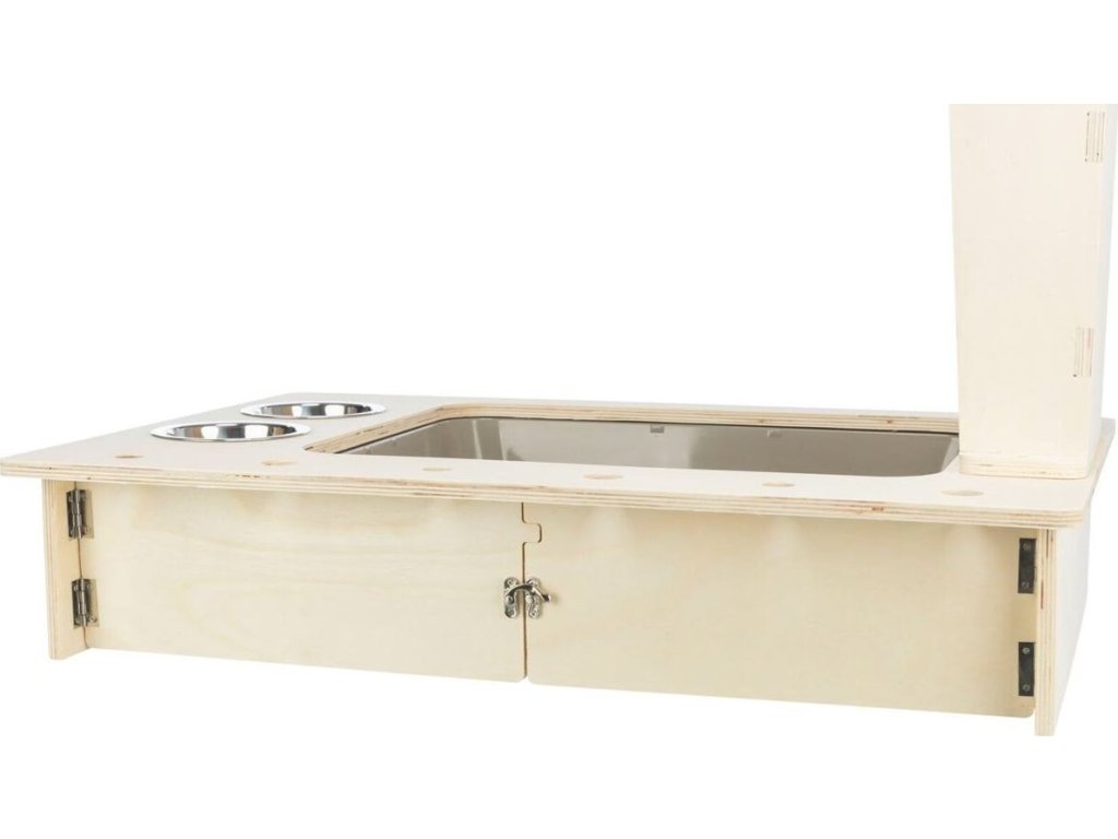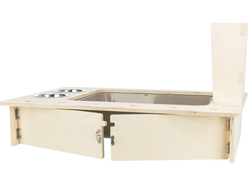 Krmná stanice - bar + misky, jesličky - 70 x 41 x 47 cm, dřevo/nerez/plast
