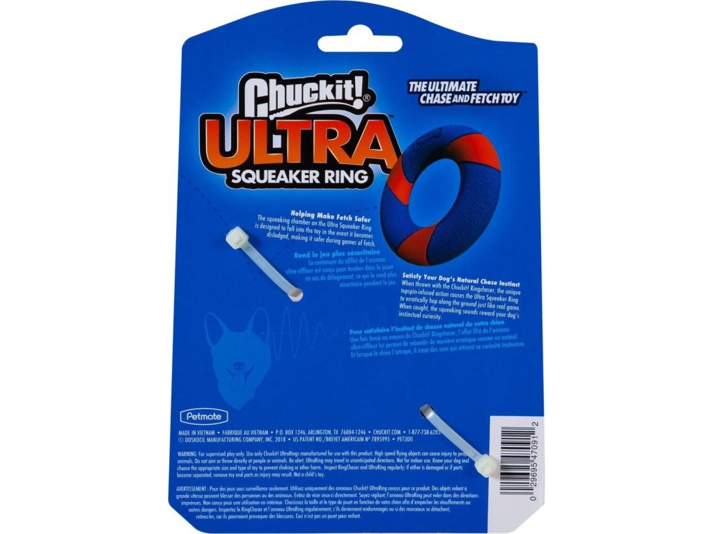 Uspokojte přirozené lovecké pudy vašeho psa s kruhem Chuckit! Ultra Squeaker. Zažijte jedinečné akce s přidanou horní rotací od Chuckit! Kruh Ultra Squeaker se nepředvídatelné odráží, kličkuje a skáče na zemi, takže ve vašem psovi probudí přirozené lovecké instinkty. Když je polapen, odmění snahu vašeho psa pískavým zvukem. Pískací ventilek v kruhu Ultra Squeaker je navržen tak, aby propadl dovnitř hračky, pokud by došlo k jeho oddělení. Tím je hraní a aportování zase o něco bezpečnější. Tento kroužek píská až při silnějším tlaku a je tak vhodný především pro velké psy nebo pro psy se silným stiskem, pro které jsou klasické pískací hračky příliš měkké. Pokud ho hodíte s házečem Chuckit! Ring Chaser, kruh Ultra Squeaker se díky jedinečné konstrukci s přidanou horní rotací začne nepředvídatelně pohybovat a skákat po zemi, jako kdyby byl živý. Když je polapen, odmění lovecké instinkty vašeho psa pískavým zvukem. - pro psí milovníky pískacích hraček - ventilek je bezpečně schován uvnitř - kruh Ultra Squeaker okamžitě vtáhne psy do hry Není to žádný Titanic Je nepotopitelný, pluje na hladině. Kompatibilní s házečem kruhů S Chuckit! dohodíte ještě dál! Házečem kruhů RingChaser ho navíc zvednete bez poslintané ruky. Kličkuje a skáče jako zajíc! Kruh Ultra Squeaker se nepředvídatelné odráží, kličkuje a skáče, úplně jako živý, takže ve vašem psovi probudí přirozené lovecké instinkty. Průměr: 12,5 cm