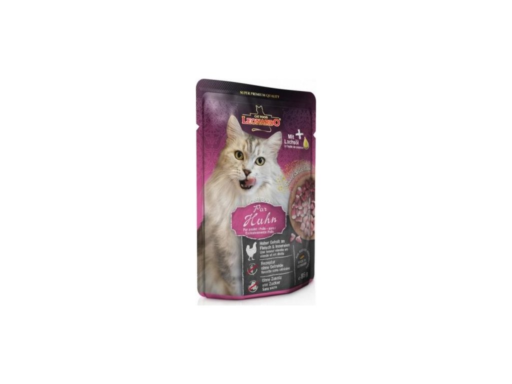 Šťavnatá kapsička Leonardo s poctivým kuřecím, po které se bude vaše kočka oblizovat až za ušima.