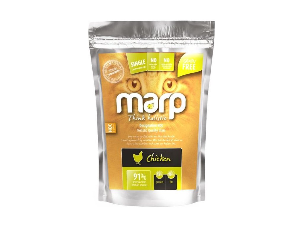 Mezi nejdůležitější vlastnosti krmiva Marp patří kvalita surovin. Klíčové je pro nás využívat lokální dodavatele – tedy místní zemědělce a farmáře. Maso zpravidla pochází ze zvířat z volných chovů. Díky jednomu druhu masa a jednoduchému složení se nám daří vytvářet přírodní krmiva, po kterých kočky dobře prospívají. Řada Marp Holistic obsahuje vždy suroviny pouze z jednoho zvířete – čerstvé maso, sušené maso a tuk.