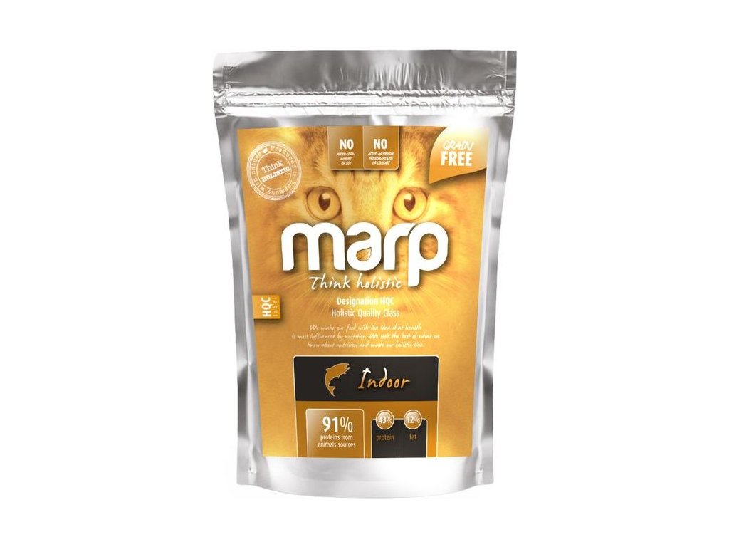 Mezi nejdůležitější vlastnosti krmiva Marp patří kvalita surovin. Klíčové je pro nás využívat lokální dodavatele – tedy místní zemědělce a farmáře. Maso zpravidla pochází ze zvířat z volných chovů. Receptura Indoor CAT byla vyvinuta speciálně pro kočky, které žijí v domácnosti. Obsahuje skutečně vysoký obsah masa a nekompromisní obsah bílkovin ze živočišných zdrojů - 91 %. A je sestavena tak, aby pomáhala předcházet potížím, kterým mohou být domácí kočky vystaveny.