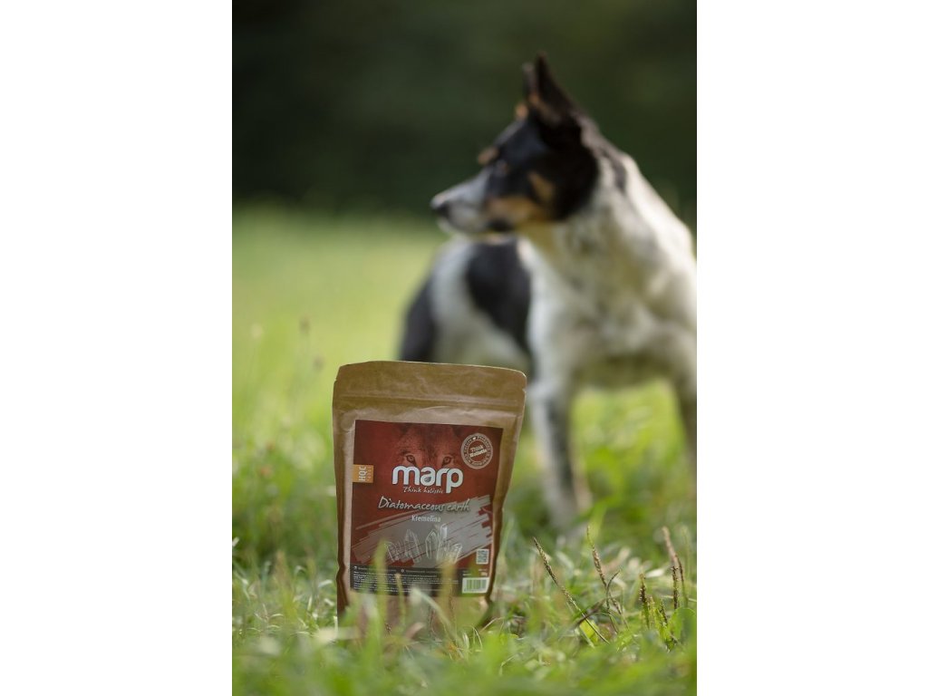 Unikátní struktura křemeliny jí dává schopnost vázat na sebe řadu škodlivých látek. Díky těmto vynikajícím absorpčním vlastnostem je schopna vázat v zažívacím traktu vše, co tam nepatří, při průjmech funguje jako enterosorbent. Křemelina se tak osvědčuje při celkové očistě zažívacího traktu. Svým tvrdým a jemně abrazivním povrchem čistí stěny střev i mechanicky a podporuje jejich pohyby (peristaltiku). V křemelině je obsaženo mnoho minerálních látek, v největším množství křemík, který je pro organismus nepostradatelný. Marp křemelina je v té nejvyšší kvalitě určené pro lidskou spotřebu.