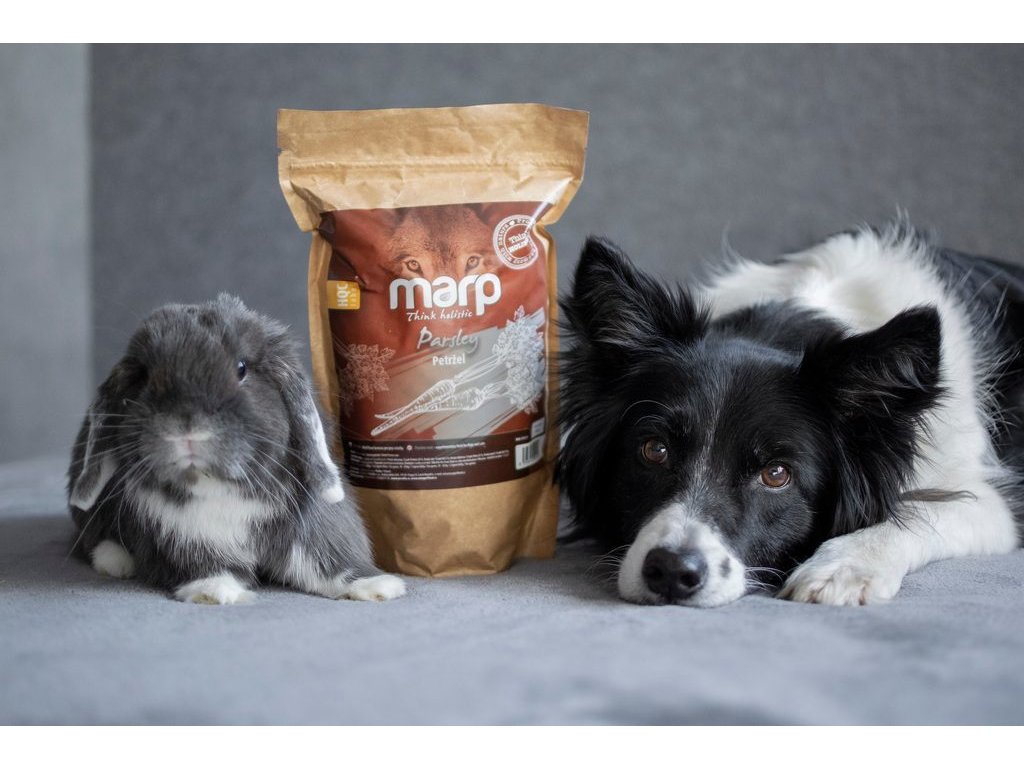 Vsypte požadované množství zeleniny do misky, přidejte trochu vlažné vody a nechte odstát. Nyní můžete přimíchat některý z doplňků stravy - například olej (Lososový nebo další oleje Marp) nebo doplněk stravy (například Marp Kelpa). Dobře promíchejte. Nyní můžete přidat některou z masových konzerv Marp.