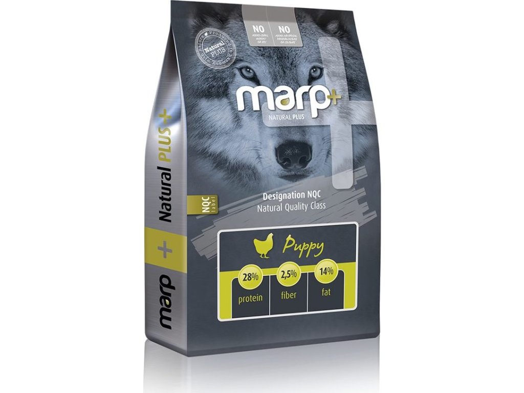 Nová řada Marp Natural Plus přináší i jednu zbrusu novou recepturu. A tou je čistokrevná receptura pro štěňata s názvem Marp Natural Plus Puppy. Je postavená na sušeném kuřeti a kuřecím tuku a má velmi jednoduché složení. Tato receptura má ideální výživový profil pro štěňata všech plemen a ideální poměr vápníku a fosforu pro štěňata velkých plemen. Složení jsme navíc obohatili o lněné semínko, které působí velmi blahodárně na srst a také o sušenou čekanku, bohatý zdroj fruktooligosacharidů. I pro novou řadu Natural Plus platí, že je postavená na kvalitních surovinách, od lokálních producentů.