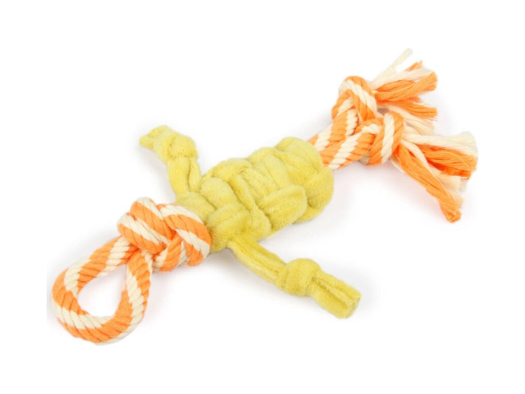 Provazová hračka ve tvaru panáčka z kombinace měkké pleteniny a bavlny je ideální pro štěněcí žvýkání. Kvalitní zpracování a příjemný materiál pro bezpečné první hry vašeho nového mazlíčka. Tato řada hraček vhodných zejména pro malá štěňata je vyrobena za barevných měkkých materiálů tak, aby vyhovovala jejich potřebám. Stejně jako lidé se i domácí zvířata mohou nudit při každodenní rutině. Díky široké škále textur, barev a zvuků vaše štěně objevuje nové způsoby hraní. Velikost: 22 x 14 x 3 cm