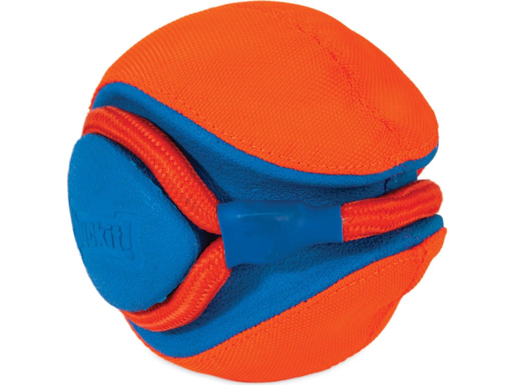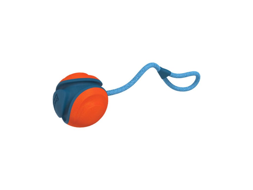 Zábavný míč se šňůrou, který je perfektní pro každou hru - aportování, přetahování i kopanou. Nylonovou šnůru s poutkem lze snadno schovat do povrchu míče. Ten je pro psa během hry dobře uchopitelný díky příjemně tvarovanému designu. Výrazná oranžová barva zvyšuje viditelnost míče ve vysoké trávě, písku, sněhu nebo v jiných otevřených prostorech. Míč je vyplněný pěnovou gumou a na povrchu potažen odolnou tkaninou. Barva: oranžovo-modrá Průměr: 13 cm