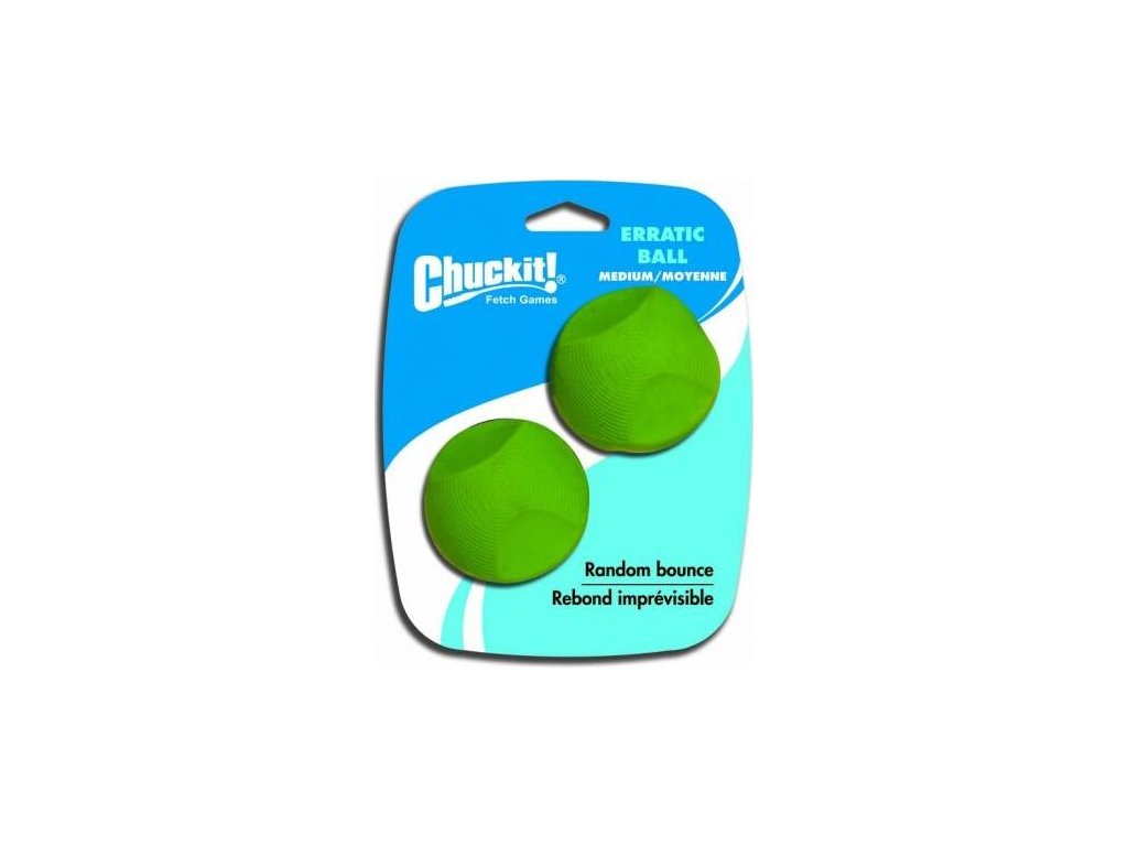 Aportovací gumové míčky speciálního tvaru s nevypočitatelným odskokem. Větší zábava při hře. Míčky Erratic jsou určené pro všechny aportéry, které již nebaví ten stále stejný odskok. Míčky díky svému tvaru odskakují pokaždé jinak a Vašeho psa tak bude aportování ještě více bavit. Míčky jsou kompatibilní s házeči Chuckit!. Barva: zelená Průměr: 6,5 cm Balení: 2 ks