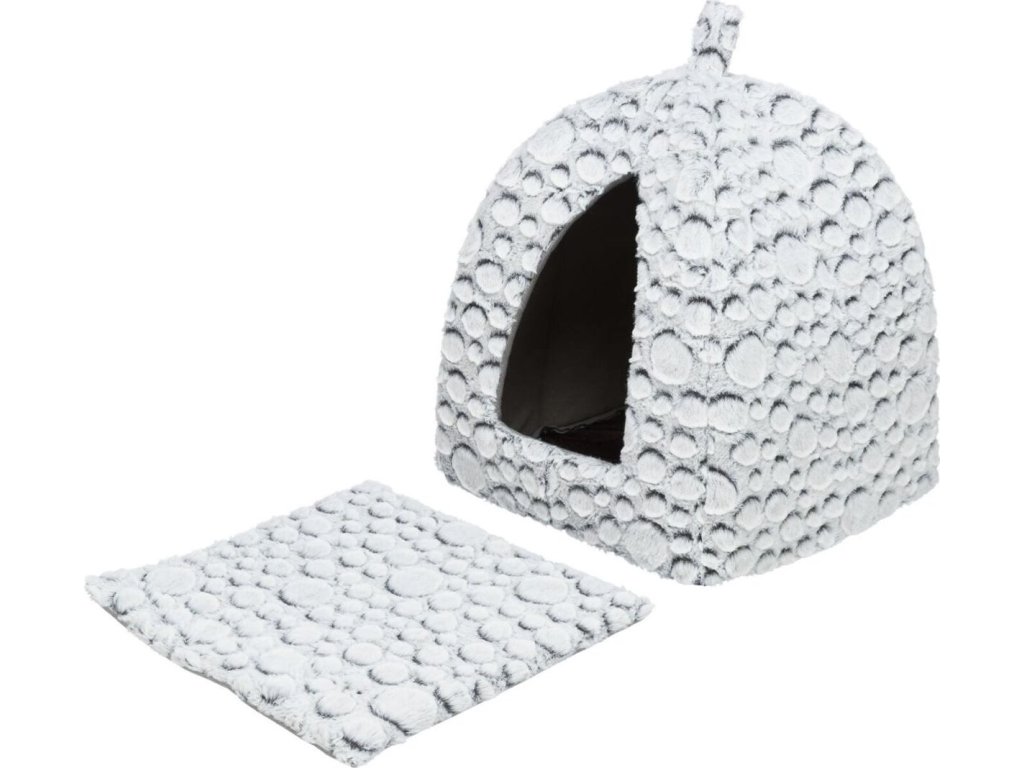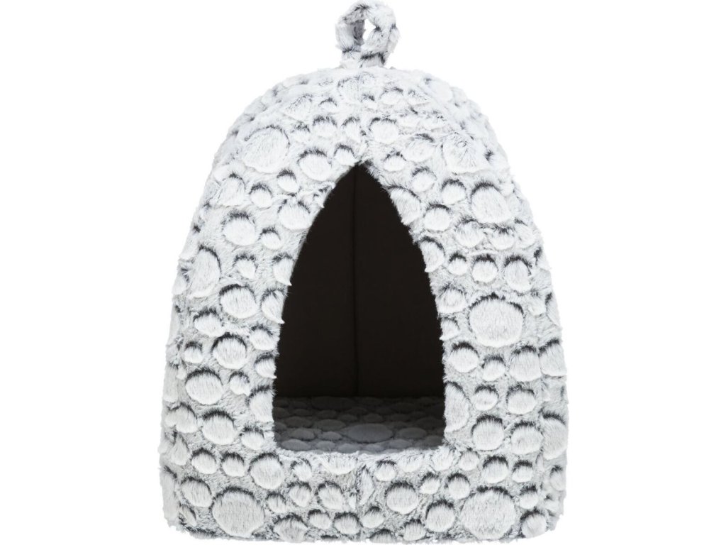 MILA plyšová jeskyňka s polštářem, 32 × 42 × 32 cm, bílá/šedá