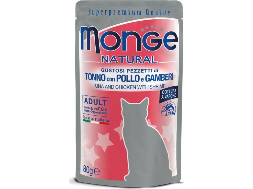 MONGE NATURAL kapsička tuňák a kuře v želé s krevetami pro kočky80g