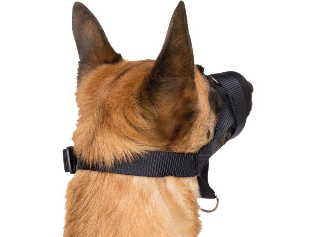 Páskový náhubek je pohodlný s měkkým polstrováním. Náhubek je nastavitelný v oblasti nosu i hlavy. Pod bradou má očko na připnutí vodítka a tím je umožněna i lepší ovladatelnost psa.
