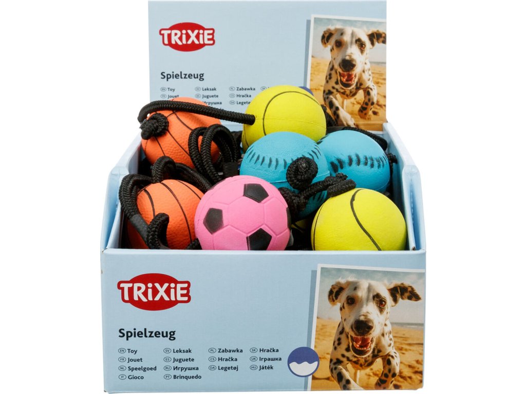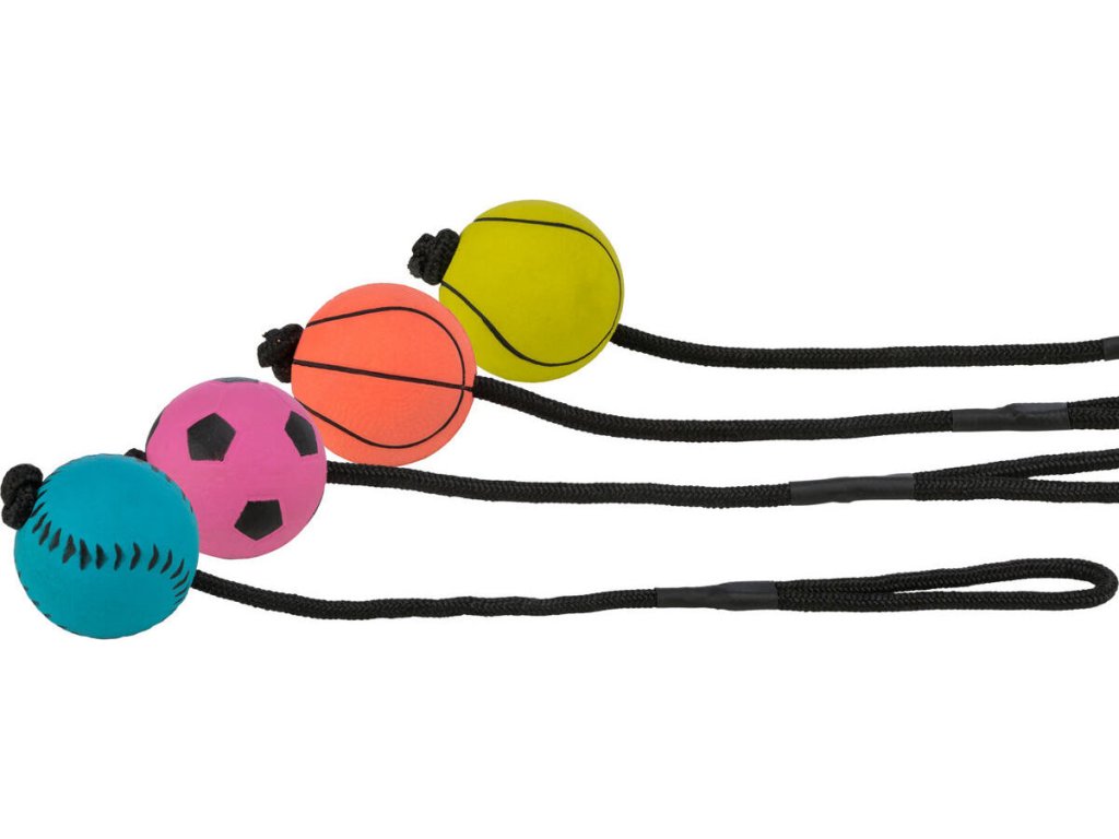 Neonový míč na šňůře, mechová guma, 6cm/30cm TRIXIE