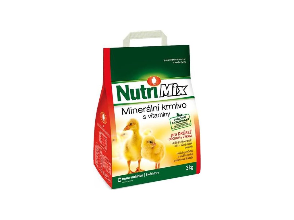 Nutrimix pro drůbež - odchov a výkrm je určen pro doplnění minerálních látek a vitaminů do krmných dávek pro kuřata, kachňata, housata, krůťata a další drůbež chovanou v drobnochovech. Podporuje dosažení maximálních přírůstků, využitelnost krmiv, životaschopnost a dobrý zdravotní stav rostoucí drůbeže. Přidává se do krmné dávky, která je založena na obilných šrotech nebo jiných neplnohodnotných krmivech, popř. kuchyňských zbytcích atd.