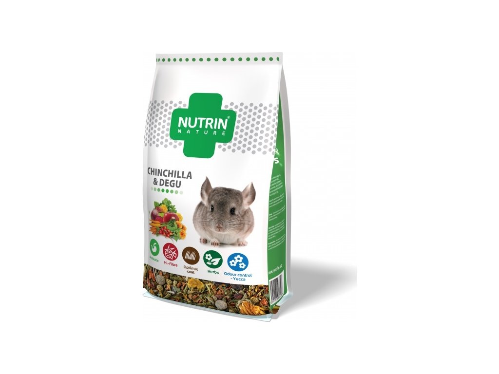 Kompletní krmivo pro činčily s vyváženým poměrem vitaminů, minerálů a ostatních živin.
