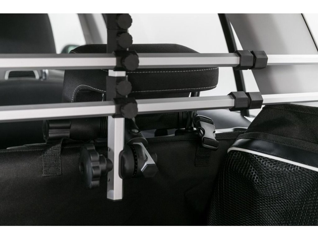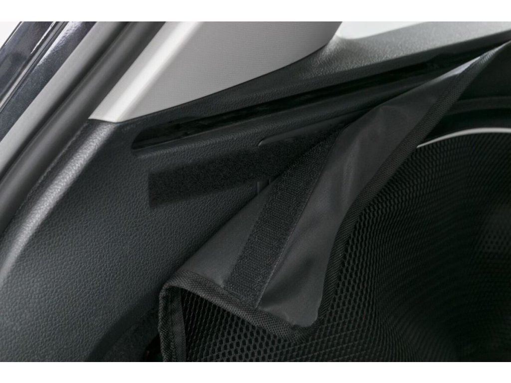 - přichycení popruhem k opěrkám hlavy zadních sedadel a po stranách pomocí suchého zipu