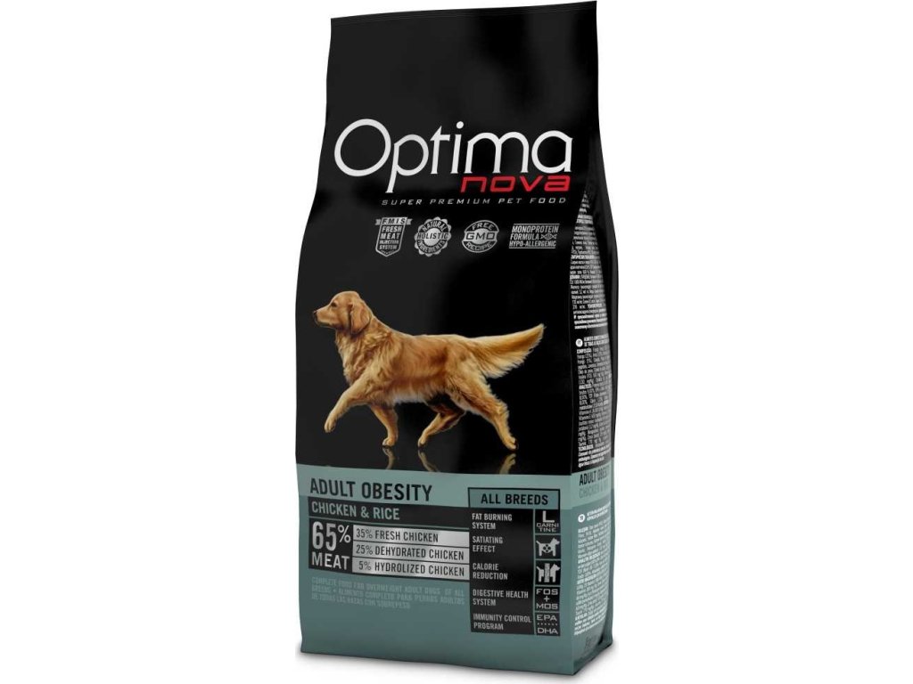 OPTIMAnova Dog Obesity Chicken & Rice složené z kvalitních bílkovin a lehce stravitelných sacharidů v kombinaci s prospěšnými tuky. Krmivo obohacené o vitamíny, minerální látky a antioxidanty.