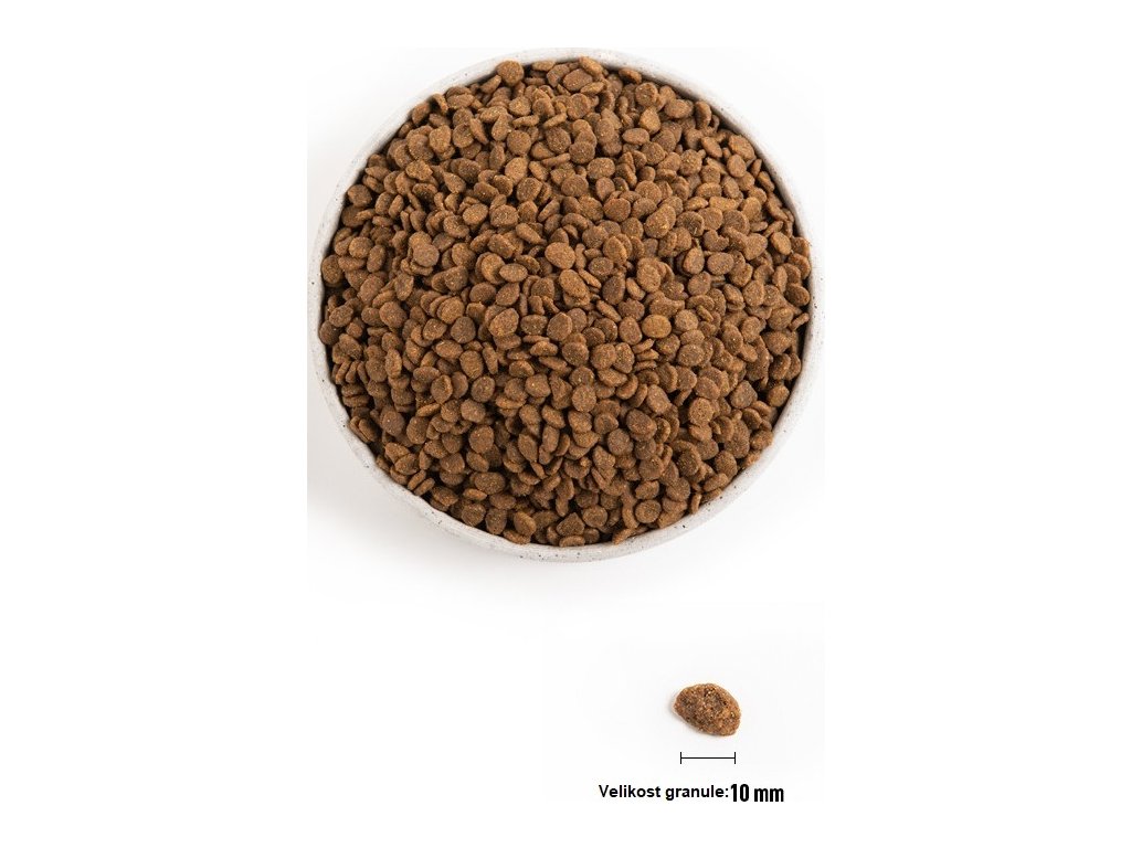 ANALYTICKÉ SLOŽKY: Hrubý protein 42 %, obsah tuku 15 %, hrubý popel 10 %, hrubá vláknina 6 %, vlhkost 10 %, vápník 1.4 %, fosfor 1.1 %, omega-6 FA 2.4 %, omega-3 FA 1.0 %, DHA / EPA 0.3 % / 0.2 %, hořčík 0.1 %, Taurin 0.2 %.