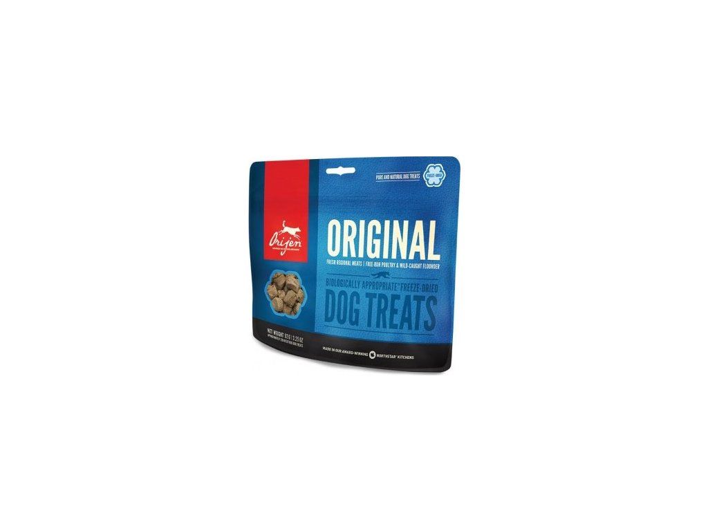 Receptura pamlsků ORIJEN Original je stejně unikátní jako váš pes. Suroviny jsou do našich kuchyní dodávané čerstvé a následně jsou šetrně mrazem sušené, aby v nich zůstala zachována vynikající chuť bohatá na živiny. Vytváří tak chutný a výživný pamlsek, který si váš pes zamiluje.