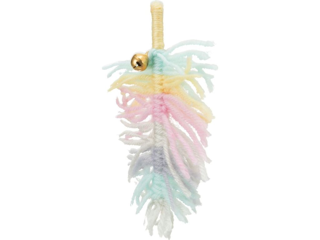 Peříčko z vlny s rolničkou, hračka pro kočky, 14 cm, polyester - DOPRODEJ