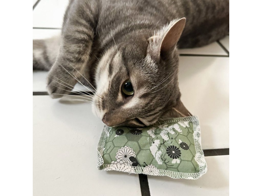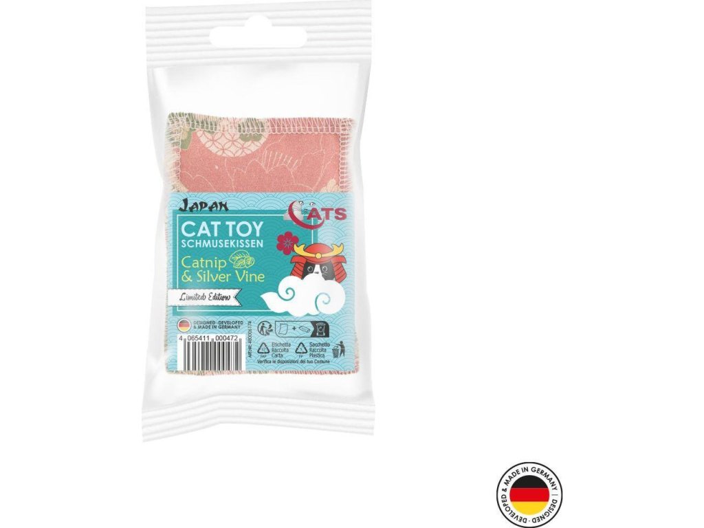 Jedinečná hračka, která přináší do kočičího světa neodolatelnou vůni šanty kočičí a zaručuje tak hodiny zábavné a stimulující aktivity. Ať už se kočka bude s polštářkem mazlit, chytat jej nebo se s ním prát, věřte, že si hru s ním maximálně užije! Díky své praktické velikosti, měkkosti a lehkosti je polštářek vhodný jak pro velké kočky, tak i pro ta nejmenší koťátka, která jej bez námahy zvládnou chytit do tlapek a hrát si s ním! Šanta kočičí je známá svým stimulujícím účinkem na kočky, což zajišťuje, že polštářek zůstane pro vašeho mazlíčka zajímavý po dlouhou dobu. Hra s polštářkem může kočce přinést pocit klidu, spokojenosti a úlevu od stresu. Každá kočka může na účinky bylin reagovat odlišně. Proto se nebojte experimentovat a vyzkoušejte i jiné druhy bylinek. V našem sortimentu najdete hračky s šantou kočičí, kozlíkem lékařským a aktinidií stříbrnou. Řada polštářků Japanese vyniká vkusnými motivy japonských květin v decentních barvách. Kromě koček samotných zajisté osloví i jejich majitele, kteří si potrpí na vkusné doplňky jejich domácnosti. Hračky jsou vyráběny podle nejvyšších standardů, s použitím pouze bezpečných, testovaných materiálů a díky dvojitým švům není při jejich výrobě potřeba žádné lepidlo. To zaručuje nejen dlouhou životnost, ale i absolutní bezpečnost každého polštářku. Vyrobeno v Německu. Velikost: 10 x 7,5 cm Barva: dle aktuální nabídky