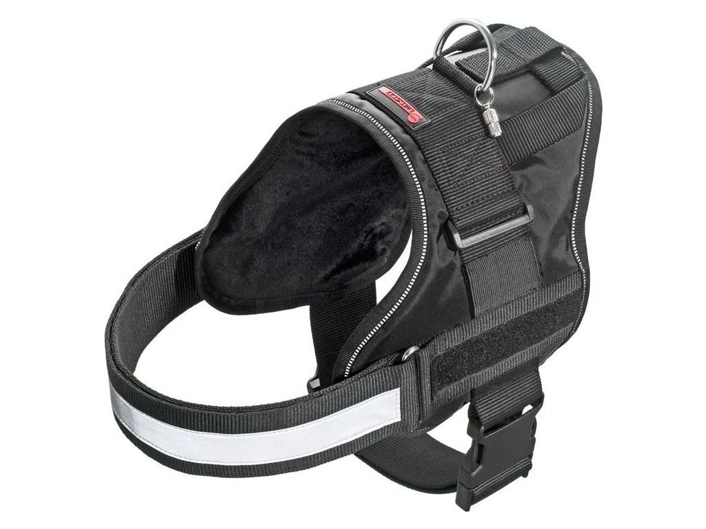 Postroj teflon XTREME 69674 " Originál s teflonem " S pouzdrem na identifikační kartičku " Optimální rozložení tlaku pomocí odlehčeného polstrování " Extra silně prošitý " Reflexní " Integrovaná rukojeť na suchý zip " Možnost připojení Karlie Doggy Talk Slogans(např. Policie) a brašny Návod k použití: Upevněte břišní popruh na správné místo. Břišní popruh je ideálně nastaven, když můžete svou ruku naplocho prostrčit mezi postroj a záda Vašeho psa. Takto připnutý postroj zajišťuje dostatečné vzduchové proudění mezi postrojem a srstí. Vždycky zavírejte rukojeť, je-li pes na volno. Mějte psa pod dohledem.Doplňkové parametry