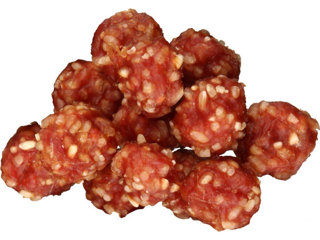- kuličky z kachního masa doplněné rýžovými kousky