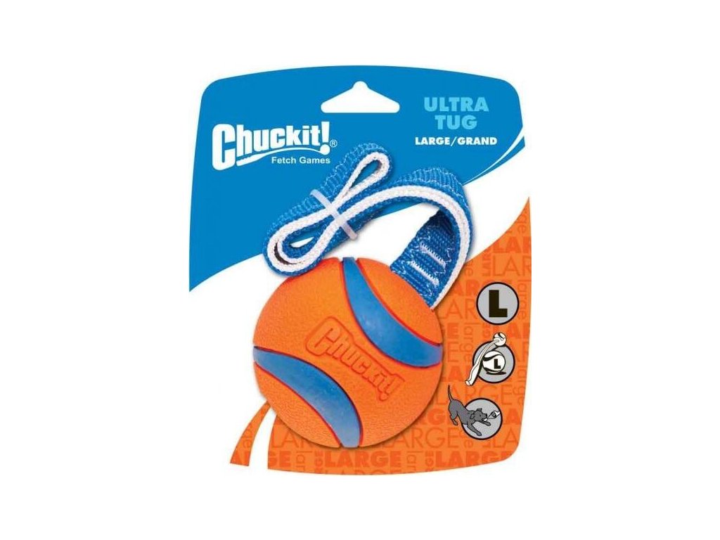 Velice odolné přetahovadlo s poutkem. Poutko je velice pevné a přitom pohodlné do ruky. Míček je vyroben ze stejného materiálu, jako legendární míčky Ultra Ball. Přetahovadlo je výborně viditelné, odolné a jednoduše omyvatelné. Velikostí je určeno pro velká plemena. Průměr míčku: 7,5 cm Přetahovadlo je kompatibilní s házeči Chuckit!