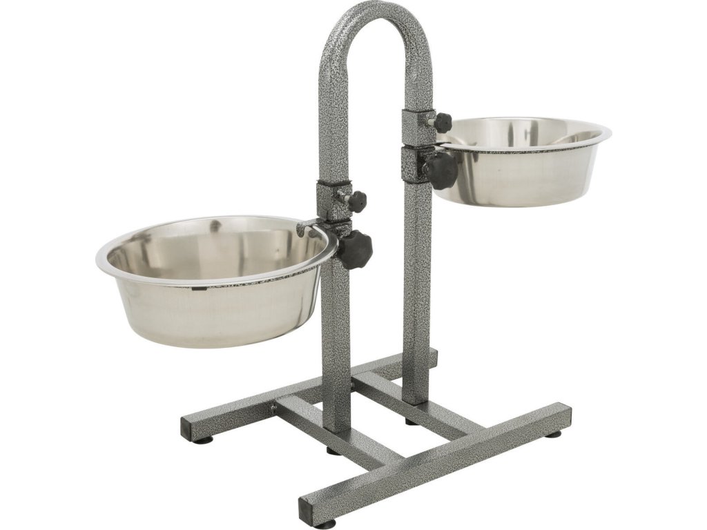 Misky na sebe nejsou vázané, takže jde u každé misky nastavit jiná výška. Tato možnost je praktická v případě, že jsou v domácnosti psi různé velikosti, anebo v případě, že má pes různé nároky na přijímání vody a krmiva.