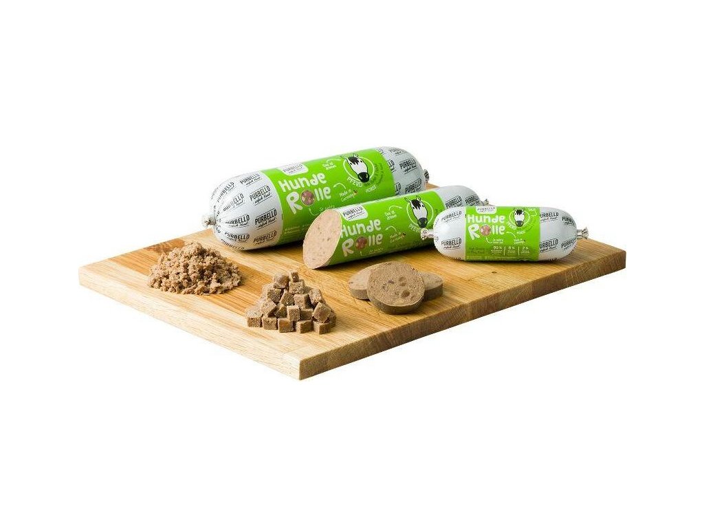 Zdravý a chutný masový salám, který obsahuje 90% čerstvého koňského masa, řepu a fenykl. Vhodné i pro psy s citlivým zažíváním. Jedná se o kompletní krmivo. PURBELLO je monoproteinové mokré krmivo pro psy koncipované pro zdravou výživu psů. Díky svému složení s jediným zdrojem živočišných bílkovin, vysokým podílem masa a té správné receptuře je krmivo PURBELLO zdravé a velice chutné. Krmivo je velmi dobře stravitelné a vhodné i pro psy s citlivým zažíváním. PURBELLO: - monoproteinová receptura - snadné dávkování - vysoký podíl masa – žádná moučka - pouze čerstvé maso, zelenina a ovoce - bez obilovin - bezlepkové - bez umělých přísad - bez konzervačních látek - vyrobeno v Německu Zdravý a chutný masový salám vhodný i pro psy s citlivým zažíváním. Bez obilovin, lepku, umělých přísad a konzervačních látek. Snadné dávkování. Složení: koňské maso a vnitřnosti 90%, červená řepa 4,8 %, fenykl 2 %, lněné semínko 1,2 %, minerály 1%, vápenec 1% Analýza: hrubý protein 11,5 %, hrubé oleje a tuky 5,7 %, hrubý popel 3,1%, hrubá vláknina 0,8%, vlhkost 73% Nutriční doplňkové látky: vitamin D3 (3a671) 224 IU, železo (3b106) 18 mg, mangan (3b504) 3 mg, zinek (3b606) 16 mg, jód (3b202) 0,84 mg, selen (3b801) 0,03 mg Doporučené dávkování: Krmnou dávku přizpůsobte váze, věku a aktivitě psa. Krmná dávka by neměla překročit 3 % tělesné hmotnosti psa. Zajistěte psovi dostatek pitné vody. Datum minimální trvanlivosti a číslo šarže najdete na zadní straně obalu. Krmivo skladujte v suchu. Po otevření skladujte v lednici a co nejdříve spotřebujte.