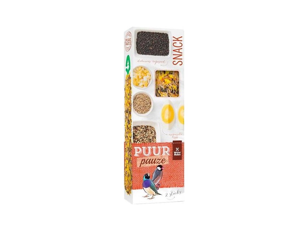 PUUR pauze Sticks Tropical bird jsou lahodné tyčinky pro drobné exoty (zebřičky, chůvičky, ...) plné přírodních chutných složek pro skutečný gurmánský požitek. Křupavé tyčinky podnítí aktivitu ptáků, zabaví je a zaženou nudu.