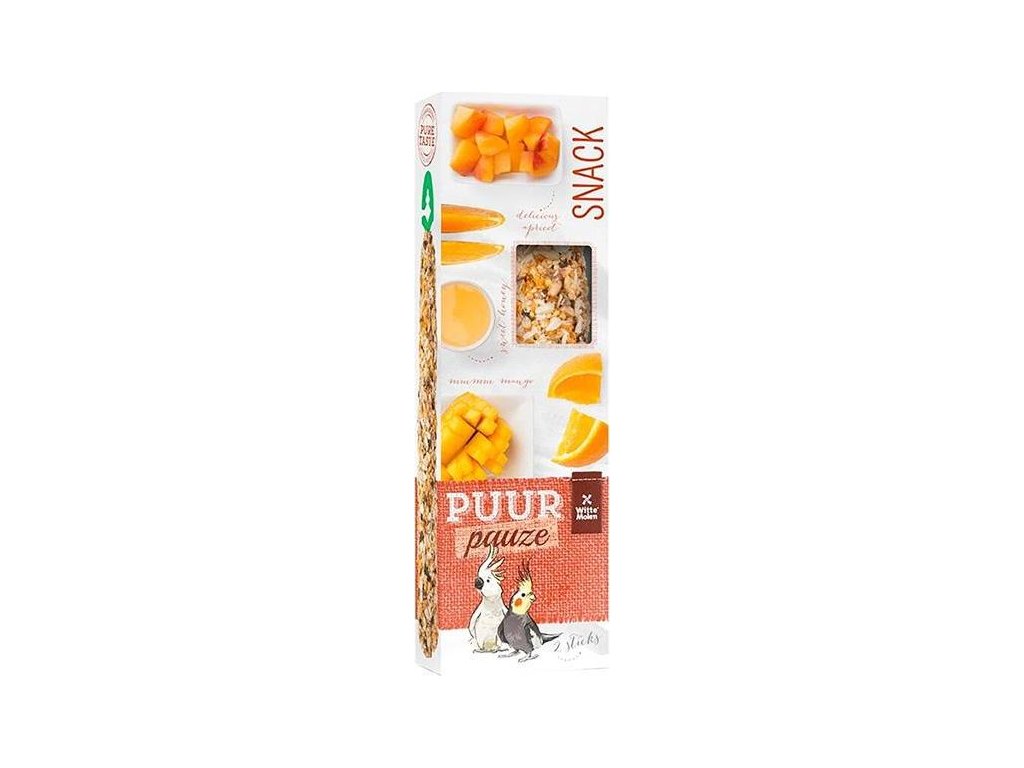PUUR pauze Sticks parakeet & cockatoo jsou lahodné tyčinky pro střední papoušky a papoušky kakadu plné přírodních chutných složek pro skutečný gurmánský požitek. Křupavé tyčinky podnítí aktivitu ptáků, zabaví je a zaženou nudu.