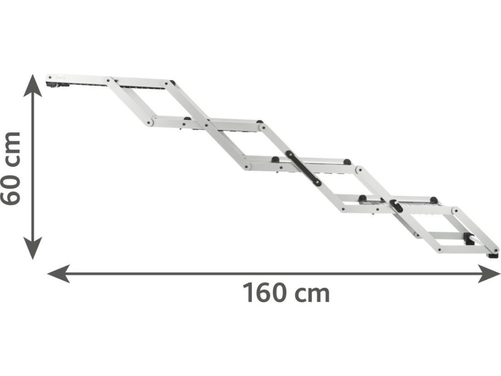 Skládací schody, 4 stupňové, hliník/TPR, 37cm šíře, až 70cm výška, max 160cm, nosnost 75kg