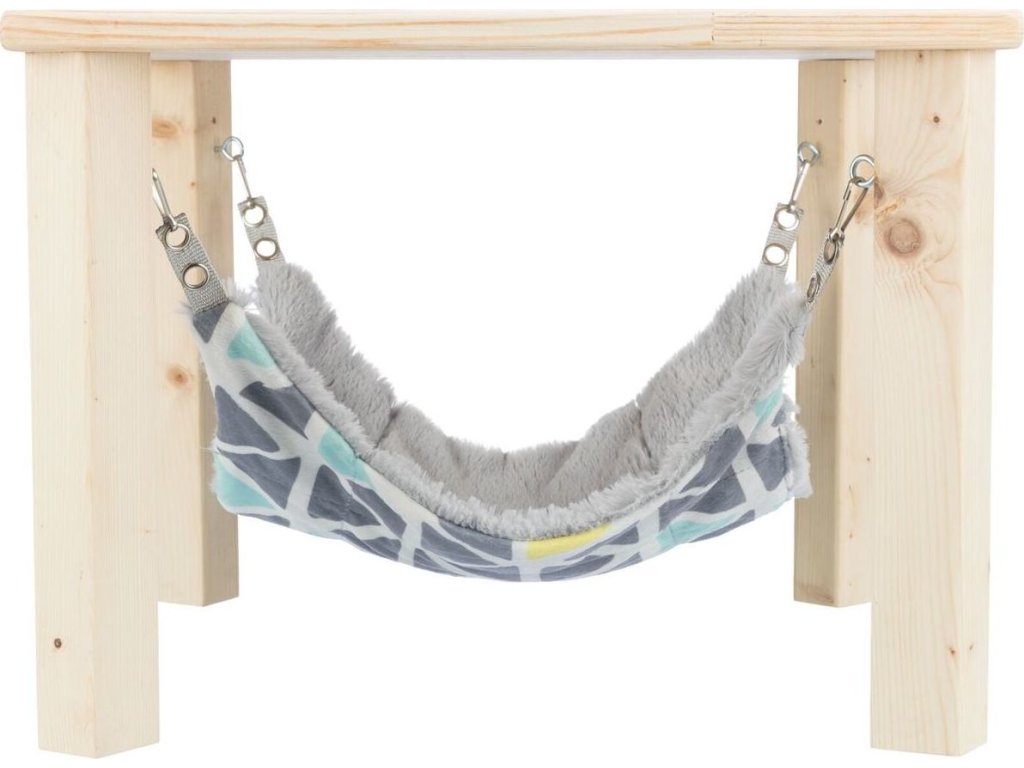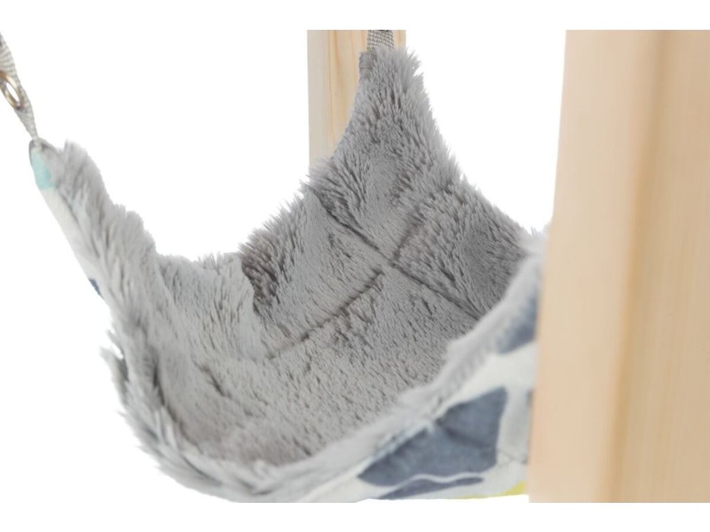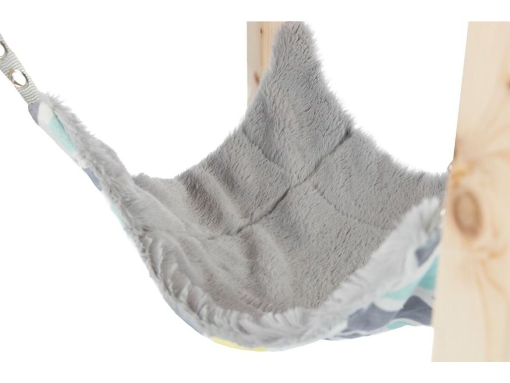 SUNNY přístřešek s houpací sítí pro činčily/morčata, 28 × 24 × 28 cm, šedá/multikolor