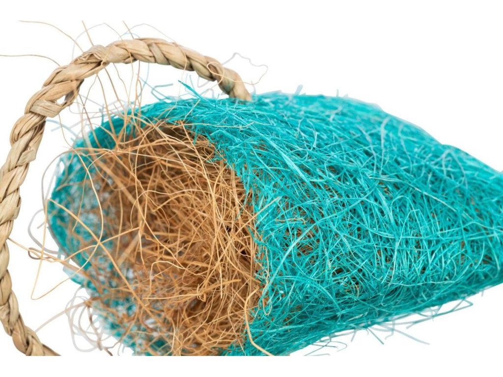 Taštička s kokosovým vláknem - hračka pro hlodavce, sisal, 10 x 13 cm, modrá