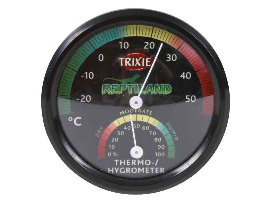 Analogový termometr/hydrometr - pro přesné určení teploty a vlhkosti v teráriu - rozsah od -25° C do 55° C (0°-110° Farenheit) a 0 až 100 % vlhkosti - jednoduchá montáž díky nálepkám na zadní části - nemontujte přímo na nebo vedle zvlhčovače vzduchu, anebo vedle tepelného zdrojeParametry produktu: