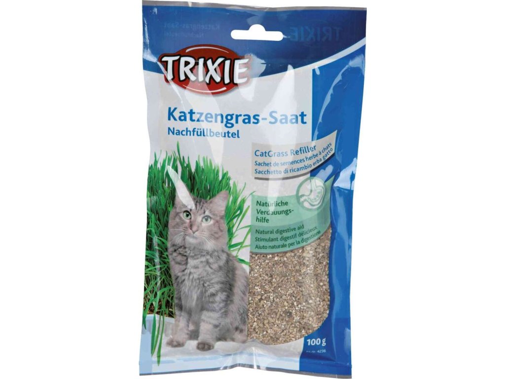 - travní semeno nasypte do misky a tu umístěte tak, aby k ní kočka měla dobrý přístup a mohla si trávu ukusovat podle vlastní potřeby