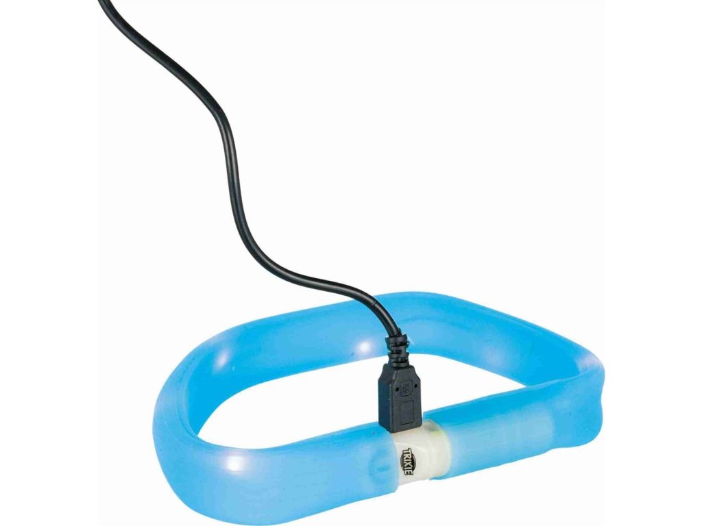 USB svítící obojek PLOCHÝ L-XL 70cm/30 mm modrý