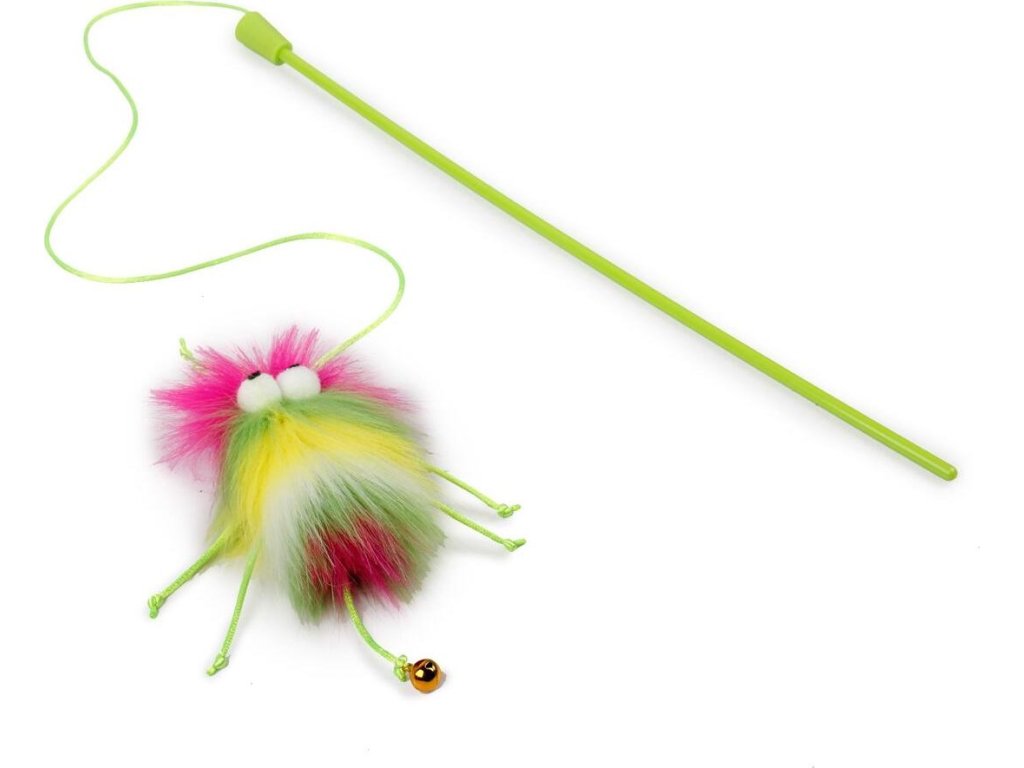 Chlupatá pestrobarevná hračka na udici se šantou nadchne každou kočku, při pohybu vydává zvuk. Kočky totiž milují dlouhé plyšové chlupy, kterými se tato produktová řada pyšní. Díky výrazným barvám a své huňatosti je tato hračka opravdu nepřehlédnutelná. Roztomilý design doplňují vtipné veliké oči, hračka tak vypadá jako malá příšerka. Hračka Fluffer na udičce je vyrobena z unikátního materiálu, plyše s dlouhým vlasem, který si vaše kočka rozhodně oblíbí. Velikost: 42,5 x 7,5 x 3 cm