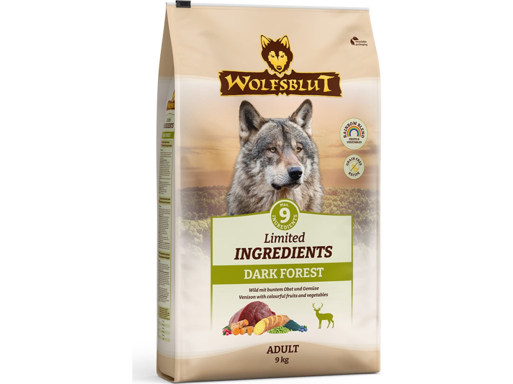 Vítejte ve světě WOLFSBLUT DARK FOREST ADULT Limited INGREDIENTS – suché krmivo zaměřené na to nejpodstatnější.