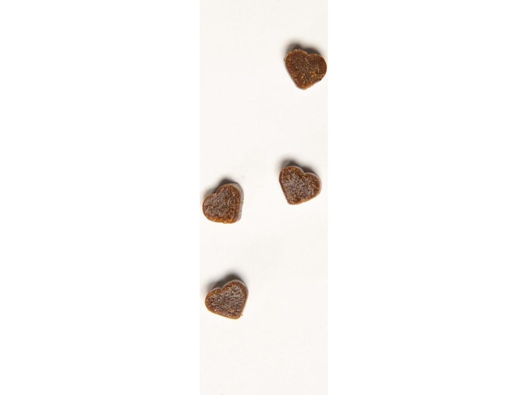 Měkké pamlsky ve tvaru srdíček, vyrobené z přírodních čerstvých surovin, které skvěle chutnají a zároveň podporují zdraví psů. Obsahují čerstvého lososa, čerstvé krůtí maso a pasterizovaný kefír. Recepturu doplňuje rozmarýnový esenciální olej, jenž dodává pamlskům neodolatelnou vůni. Pamlsky Yogupet jsou 100% přírodní, neobsahují obiloviny, umělé konzervanty či barviva, a díky tomu se hodí i pro psy s citlivým zažíváním. Jsou bohaté na omega 3 mastné kyseliny, které podporují zdraví srdce, mají protizánětlivé účinky a zlepšují kvalitu srsti a kůže, a obsahují prebiotika (mannanoligosacharidy a betaglukany), která napomáhají k optimálnímu trávení, podporují rovnováhu střevní mikroflóry a přispívají k lepší vstřebatelnosti živin. 100% přírodní – bez umělých konzervantů, dochucovadel, barviv a přidaného cukru neobsahují obiloviny ani laktózu s prebiotiky – pro optimální trávení bohaté na omega 3 mastné kyseliny – pro zdravé srdce, srsti a kůži drobná velikost, roztomilý tvar srdíček a měkká konzistence vhodné pro psy každé velikosti a věkové kategorie baleno ve znovu uzavíratelném sáčku, který pomáhá uchovat jejich chuť, vůni a měkkost po delší dobu vyrobeno ve Španělsku výhradně z čerstvých surovin Složení: čerstvé krutí maso 65 %, hydrolyzovaný škrob, čerstvý losos 5 %, pasterizovaný kefír (bez laktózy) 4,98 %, glycerin rostlinného původu, kvasnicový produkt 0,025 % Doplňkové látky: přírodní antioxidanty (tokoferoly) Aroma: rozmarýnový esenciální olej Analýza: hrubý protein 27 %, hrubá vláknina 1 %, hrubé oleje a tuky 11 %, hrubé popeloviny 7 %, vlhkost 27 % vápník 1,10 %, fosfor 0,8 % sodík 0,4 %, lysin 0,06 %, methionin 0,08 % Doporučené dávkování: Podávejte jako pamlsek, pro psy 1-8 kg: 5 ks denně, psy 8-12 kg: 10 ks denně, psy 12-30 kg: 20 ks denně, psy nad 30 kg: 30 ks denně Skladujte na suchém a chladném místě. Po otevření sáček důkladně uzavřete pomocí zipu a spotřebujte do 7 dnů. Vždy zajistěte přístup k čerstvé a čisté vodě.