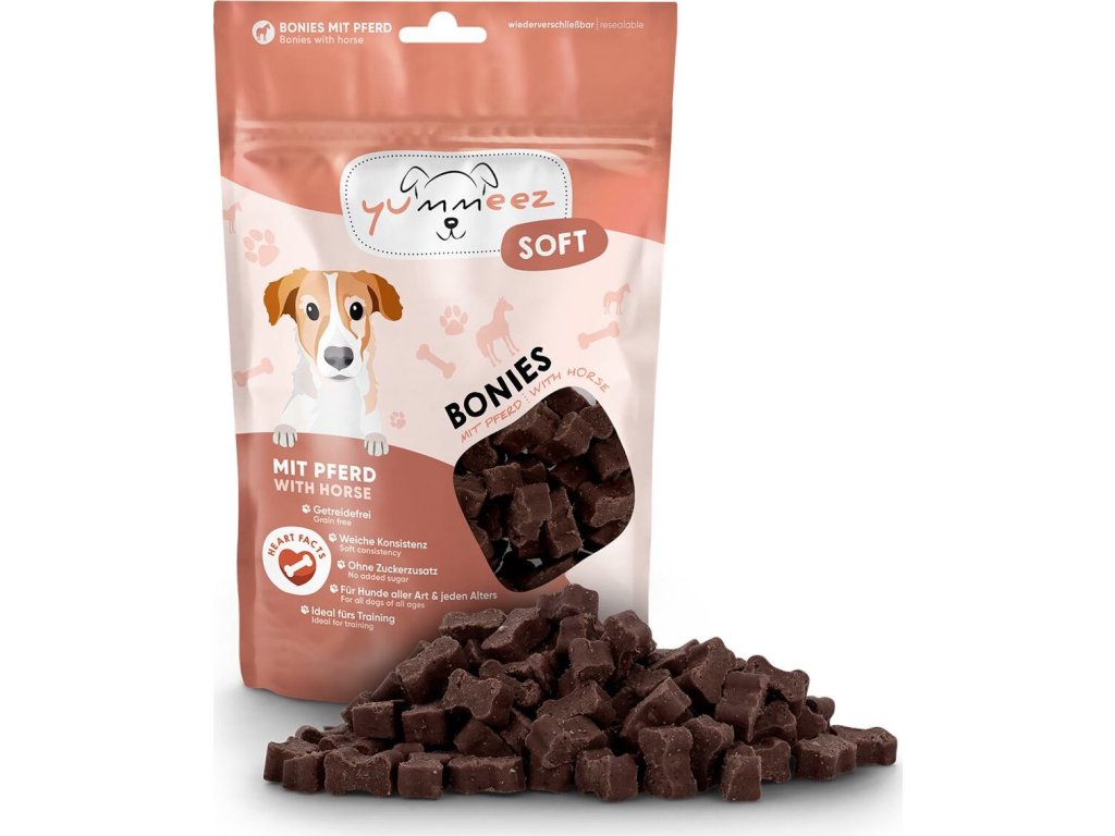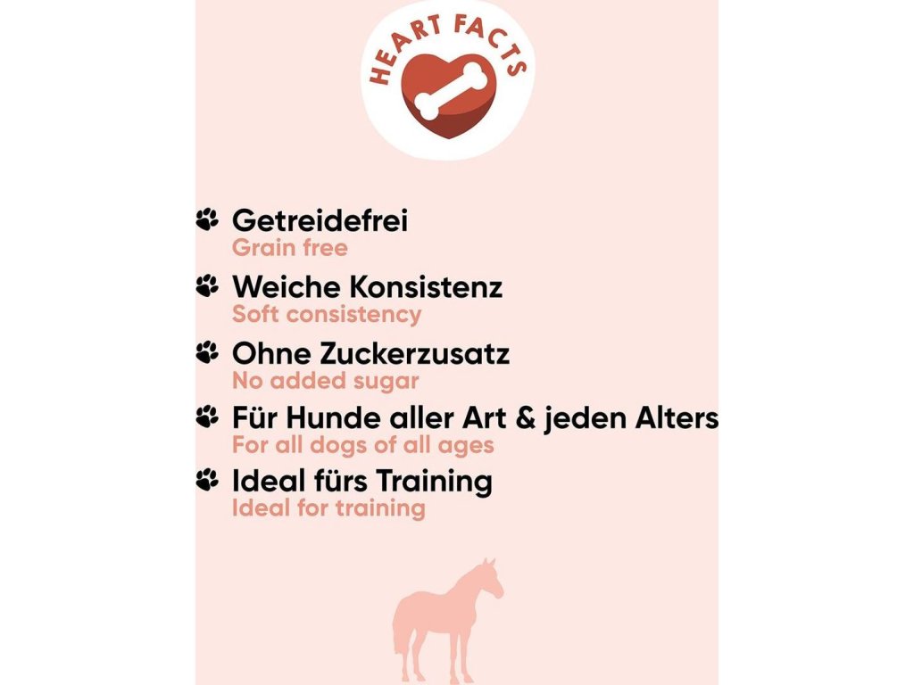 Měkké kostičky, které se snadno porcují – ideální odměna na trénink, procházky nebo výlety. Díky své vláčné konzistenci a drobným rozměrům si je oblíbí psi každé velikosti a všech věkových kategorií, včetně štěňat a seniorů. Obsahují koňské maso a nenajdete v nich obiloviny, lepek, umělé konzervanty, ani přidaný cukr. Jsou baleny ve znovu uzavíratelných pytlíčkách, díky kterým zůstanou déle čerstvé. měkké, snadno porcovatelné – ideální pro výcvik bez obilovin, lepku, dochucovadel a přidaného cukru vhodné pro psy každého věku a velikosti ve znovu uzavíratelném balení – pamlsky zůstanou déle čerstvé a voňavé Složení: brambory, maso a vedlejší produkty živočišného původu (drůbež, 6,5 % sušený kůň), vedlejší rostlinné produkty, minerální látky Analýza: hrubé bílkoviny 26 %, hrubé oleje a tuky 4,6 %, hrubá vláknina 1,2 %, hrubé popeloviny 6,3 %, vlhkost 21 %