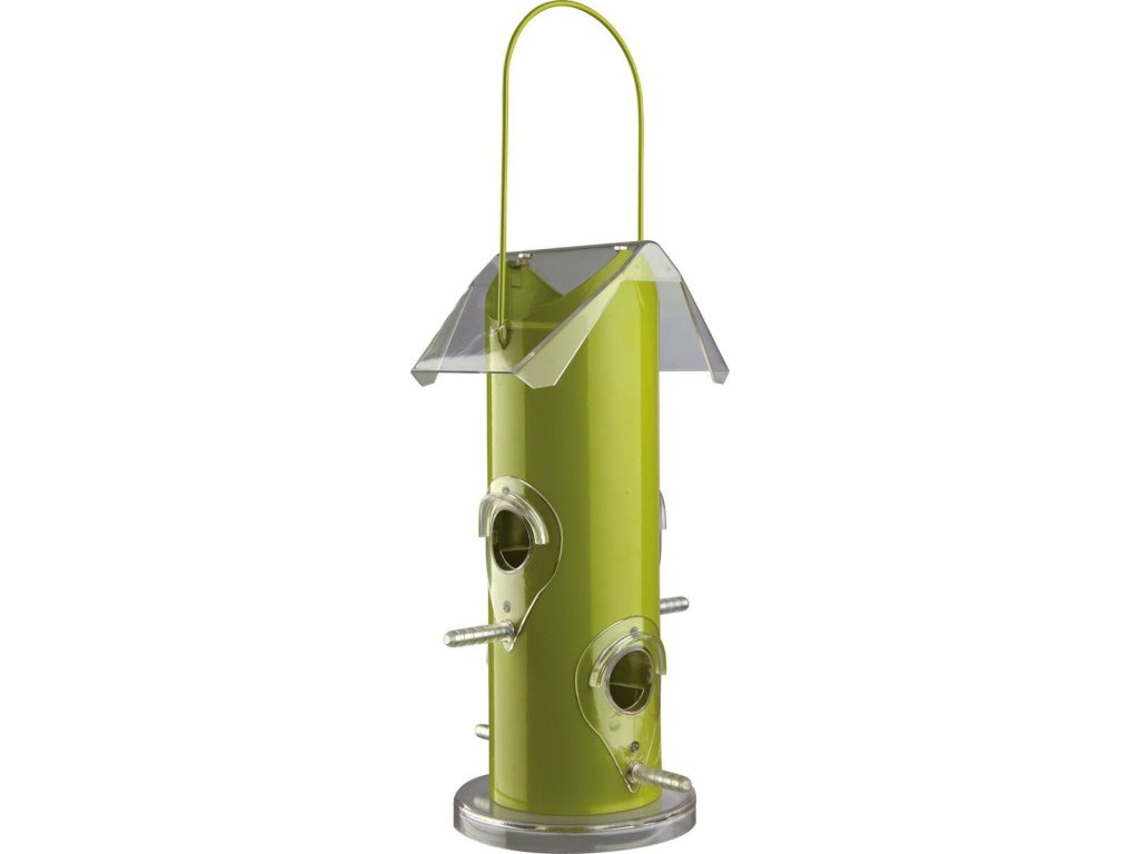 Zahradní krmítko pro ptáčky, 4 otvory 14x25x14 cm kovové zelené