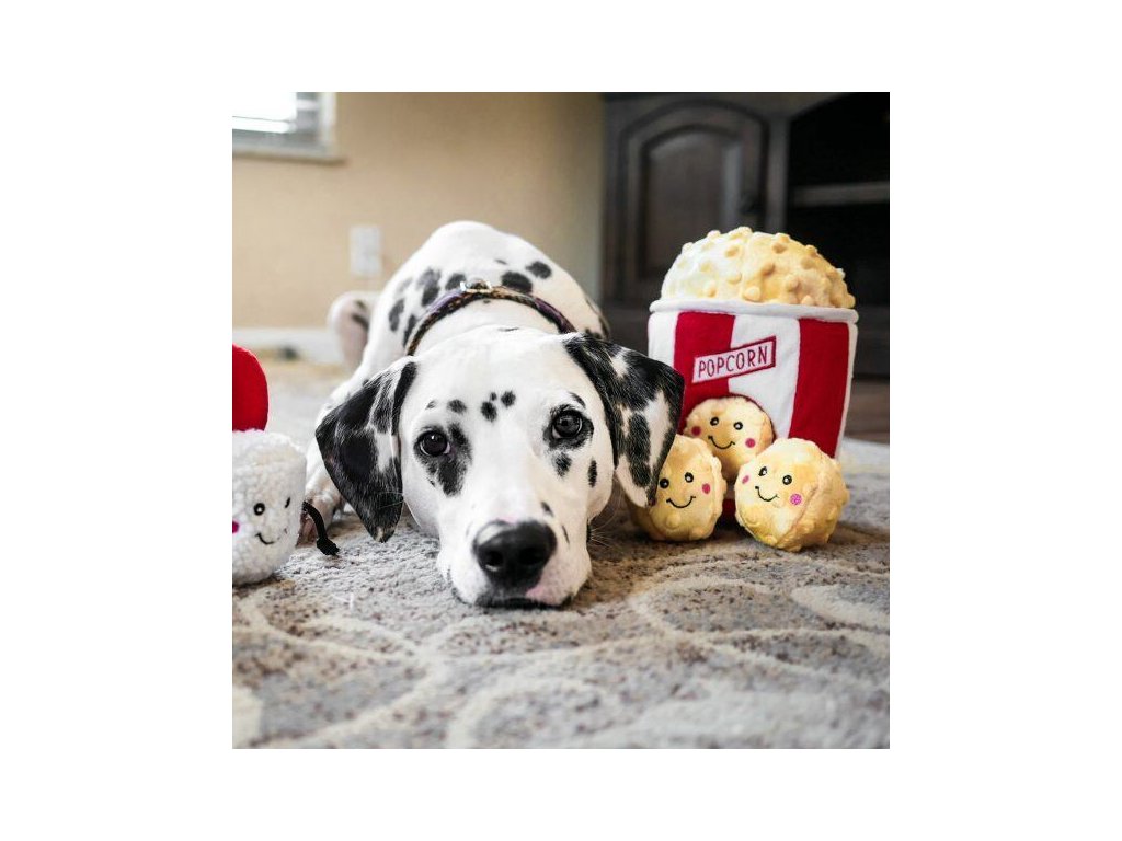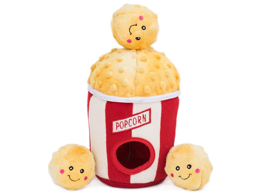 Interaktivní plyšová hračka. Popcorn ve svém kyblíku. Psi milují vyndávání malých plyšových zvířátek z jejich schovávačky. Tato hračka zaměstná Vašeho mazlíčka na dlouhou dobu. Každé z plyšových zvířátek má v sobě jedno pískátko, což je činí ještě neodolatelnější. Velikost: 21,5 x 15 x 15 cm