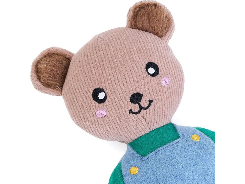 Rozkošný medvídek, který jako by vypadnul ze stránek pohádkové knížky! Je vyroben z přírodních materiálů, má manšestrové tělo, slušivý modrý obleček z plsti s vyšívanými detaily a chlupaté uši a ocásek. Pejsci milují zkoumat různé textury a tvary, jak tlamou, tak packami, a proto si tato kombinace materiálů zajisté získá jejich pozornost! Obsahuje jedno ekologické pískátko z EVA materiálu, který je lehký, pružný, odolný, a hlavně bezpečný a netoxický. Tato hračka představuje myšlenku, že i krásné, kvalitní a odolné produkty mohou být ekologické a že si naše domácí zvířátka zaslouží stylové hračky, které neškodí životnímu prostředí. Tím uděláme radost nejen jim, ale i celé planetě. Velikost: 27,5 x 17,5 x 2 cm