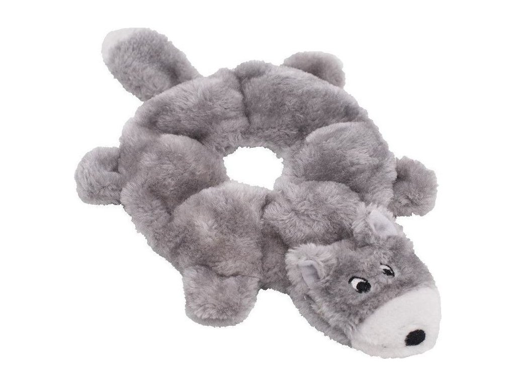 Tento plyšový vlk je vybaven hned šesti pískátky! Zaujme tak především pejsky, co mají rádi hlasitou hru. Tvar kroužku umožňuje psům pohodlné a pevné uchopení hračky zuby i tlapkami. Hračka nemá uvnitř vycpávku. Velikost: 25 x 20 x 2,5 cm